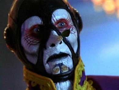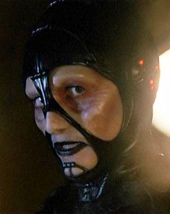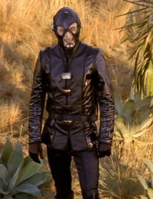Crichton's reunion with Aeryn on Moya was hardly what he had expected: she was dying and had brought Scorpius along. After seeing her in her coolant suit, so similar to that his greatest enemy had always worn, he hallucinated this image of Aeryn. The Scorpius/Aeryn wondered why Crichton could not just let Aeryn go and mocks him, saying that Scorpius, in whatever form, will always be with him.
